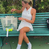 Pom echoes the sound of a tennis hit. Pêche, meaning “peach” in French, celebrates the natural beauty and diversity our bodies.